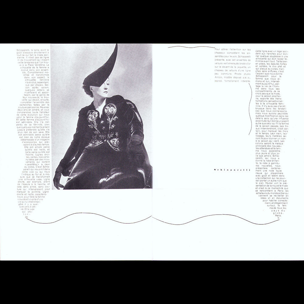 Ce numéro reproduit notamment des modèles de Schiaparelli, Molyneux, Nina Ricci, etc.