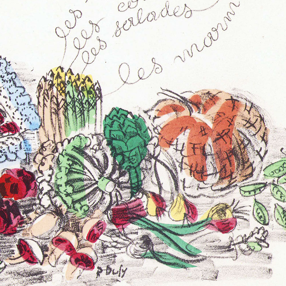 Bel exemplaire vierge d'un diplôme décerné par le club des Purs Cent. Cette gravure rehaussée est une composition de Raoul Dufy. Grand amateur de cuisine, Paul Poiret déçu des clubs des cent avait créé le club des Purs Cent en 1922. En 1928, Paul Poiret, président honoraire des Purs Cent publie chez l'éditeur Jonquières un livre de recettes recueillies auprès de grands chefs. Le Figaro indique en 1938 que ce diplôme dessiné par Raoul Dufy était distribué avec parcimonie par le club des purs cents.